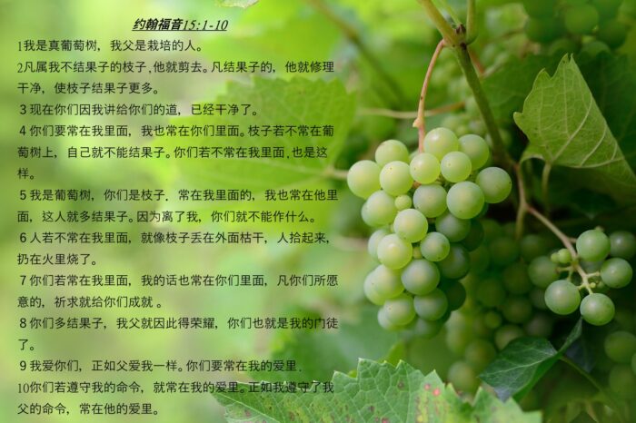 主耶稣是真葡萄树,我们是枝子,必须常在祂里面,才能结果子。只有结果子的生命,才能荣耀天父,显明我们是基督的门徒;